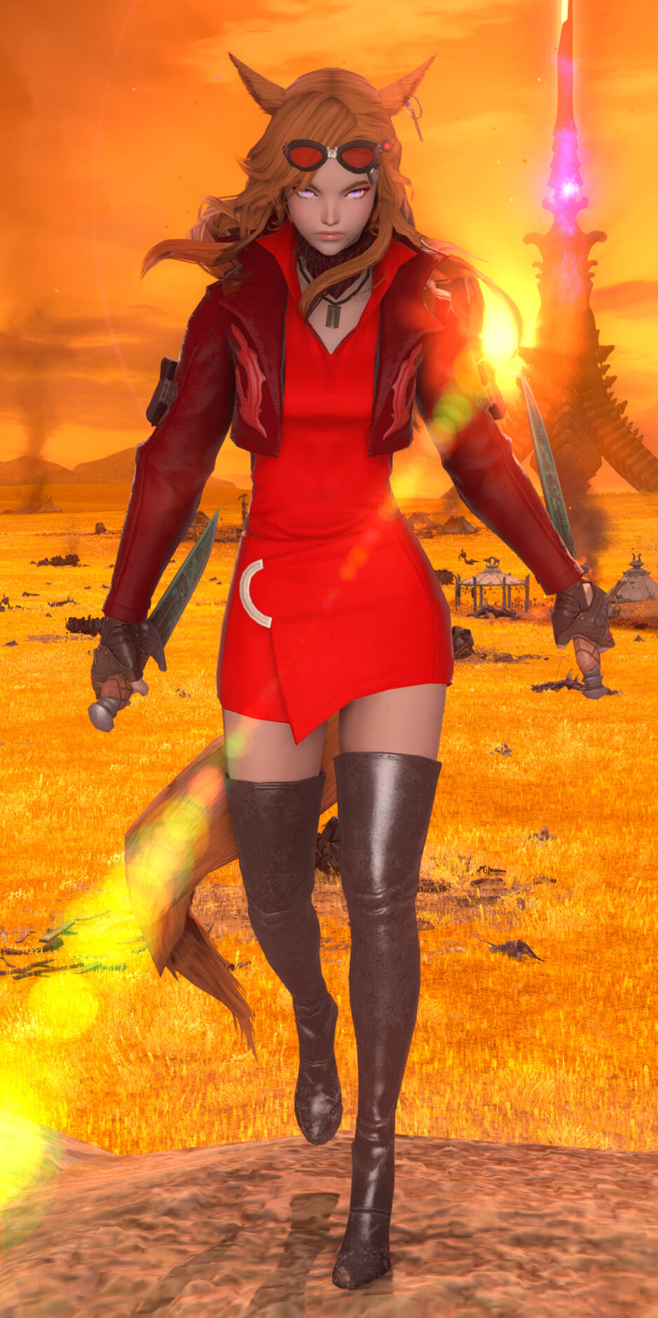 -Twin jade daggers are strapped to her thighs.