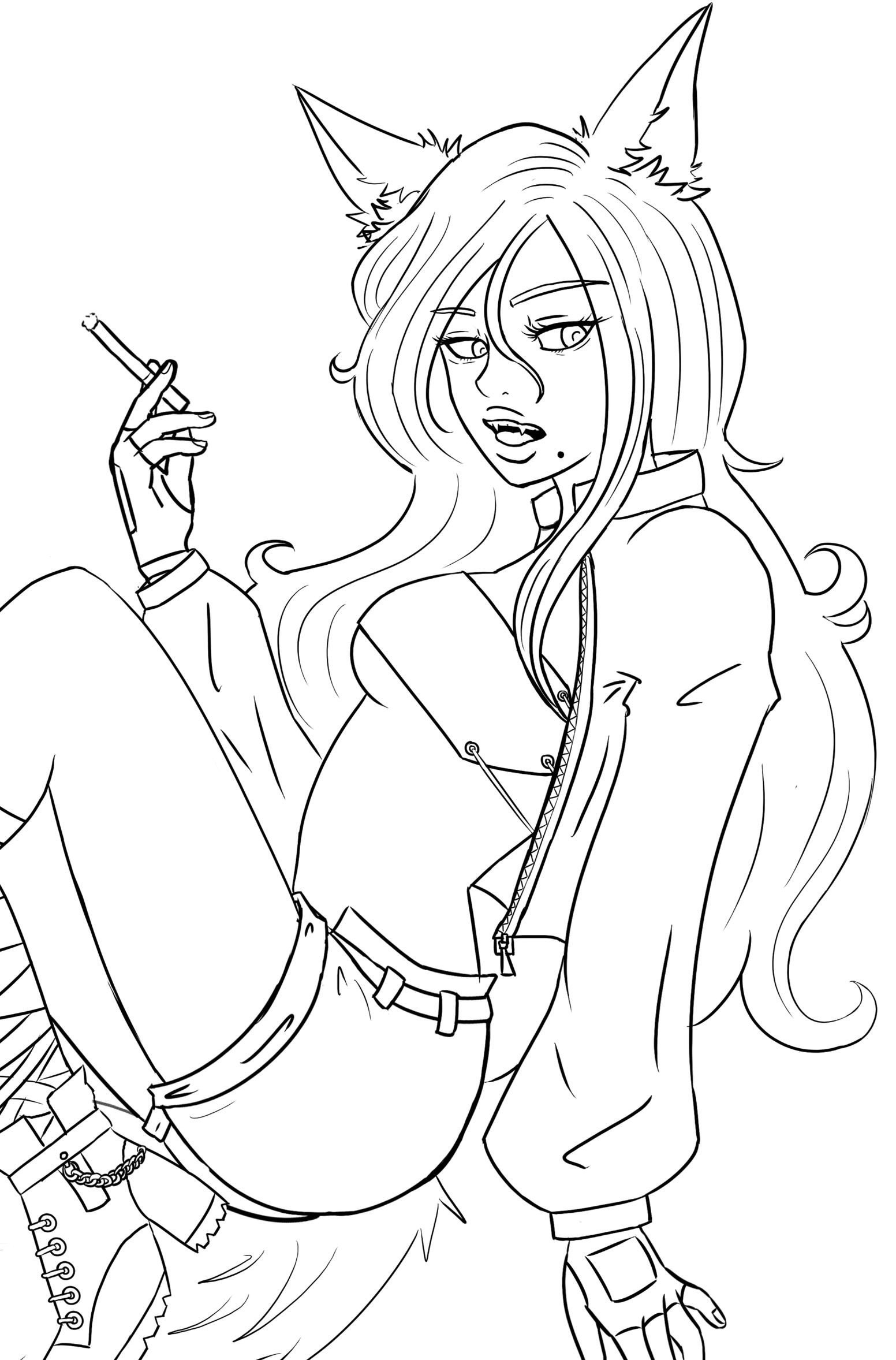 -Foxlike ears and tail